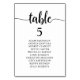 Wedding Dinner Guest Seating Table Chart Card, Modern Rustic Script, black and white themed.