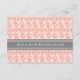 Direction card inserts for wedding in elegant and modern peach orange pink, grey and white classic and romantic floral vintage damask pattern. Customize these cards with your wedding directions or other information to be included with your wedding invitations, also perfect for anniversary parties or birthday parties. Available in a wide range of matching wedding products.
