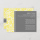 Direction card inserts for wedding in elegant and modern charcoal gray, bright lemon yellow, and white chic and classic floral damask vintage pattern. Customize these cards with your wedding directions or other information to be included with your wedding invitations, also perfect for anniversary parties or birthday parties. Available in a wide range of matching wedding products.