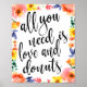 An elegant cutting edge wedding sign, features the text "All you need is love and donuts" in a extroverted script font, the brush texture adds a spontaneous and playful feeling. The background color can personalized according to your needs and preferences, please contact me if you have any special request.
