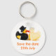 Two cute yellow rubber ducks dressed as a bride and groom. Top hat and tails with pearls. Two kissing ducks Save the Date card with customizable text for your own special message, names, save the date or add your own image.