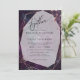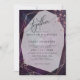 WEDDING INVITATION | Hand painted jaspé in shades of plum purple smokey lilac and dusty blue - accented with rose gold nuggets at the corners and a crystal style frame in rose gold with a sheer white center highlighting the invitation text. Handwritten script calligraphy text on the diagonal "together" at the top allows a warm personal appeal - easy to personalize template.