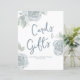 This design features a wedding welcome floral blue simple, reception sign signage party décor, cards and gifts sign signage, a trendy stylish calligraphy script font, a whimsical typography font text, classic traditional welcome guest, a modern calligraphy simple minimalist, a simplistic elegance minimal dusty blue, a clean and chic minimal picture, classic traditional bride and groom