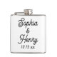 This elegant script typography black and white flask is the perfect favor for any of your wedding events! Personalize with the bride and groom names and wedding date.