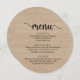 Modern Rustic Brown Wood, Round Plate shapes, Wedding elopement Dinner Menu. A perfect menu for your big day. You can change the script font colours and change the menu contents and fonts to meet your needs.