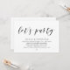 Plain white envelopes are included with paper invitations and will come to fit the invitation size you select. If you don’t need the envelopes, you may choose to not receive them by selecting the dropdown below "Envelopes" and choosing "None." If you’d like to have a design on your envelopes, you can browse all of these available envelopes to find the design that complements your Wedding Elopement Party Lets Party Invitation.