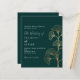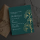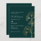 An emerald green background decorated with simple golden ginkgo leaves. Personalize and add your names and the details.