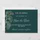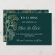 A modern and elegant Save the Date for a wedding. Emerald green background decorated with ginkgo leaves. Personalize and add a date and names. The text: Save the Date is written with a large trendy hand lettered style script.