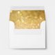 NOTE: This is a flat printed item and there is no actual gold metallic ink used, it's graphically reproduced. COLOR PALETTE: golden metallic color, white DESIGN COLLECTION: A matching envelope to use with sending Thank You Notes, stationery note cards or personal correspondence. It will coordinate with the matching wedding invite that will set the theme of your celebration and uses the Ticket Stub Corner Style option. This design was created with gorgeous warm golden fading to blush pink and then bright pink shimmering, glitter look Bokeh image. Modern and trendy, feminine glitzy bling style, this invitation is part of a simple and contemporary wedding invitation set. A semi transparent half round layer with white border has a typographic font typography layout of the text. It has pretty, sweet soft pastel colors and a girly girl feel. Cool, hip and trending - sure to please the bride for her Bridal Shower Invitation and theme.