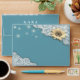 Wedding 5x7 Envelope Templates - Elegant Sunflowers, Vintage Lace Frame and Chic String Lights on Teal / Turquoise / Tiffany Blue Background.