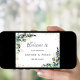 Welcome to an elegant wedding. A chic white background. Decorated with green watercolored eucalyptus leaves, sprigs, greenery, faux gold leaves and golden glitter spots. Personalize and add the names of the bride and groom and a date. Black and golden letters.