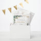 A chic white background. A chic white background. Decorated with green watercolored eucalyptus leaves, sprigs, greenery, faux gold leaves and golden glitter spots. Personalize and add the names of the bride and groom, a date and a thank you note. Black and golden letters.