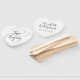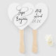 Handheld wedding fan in black and white, neutral tones. Modern fonts for names of the couple on the front, with a large “and” sign. Include the date of ceremony and “To have and to hold from this day forward” on the back. Shown on the heart-shaped fan, but this design works on all shapes.