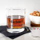 Unique modern gift for the bride's dad, this whiskey glass features his name in a large bold and trendy font and "Father of the Bride" in simple typography.