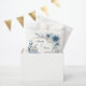 Dusty blue floral design with gold frame is perfect for a spring or summer wedding and beautiful way to announce your big day.