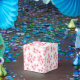 This party favor box is perfect for your wedding celebration, shown with a lovely pink blossoms art print.