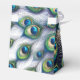 These wedding favor boxes feature watercolor peacock feathers in shades of royal blue, green and purple. The words "Thank You" are set in trendy typography, Use the template fields to add your custom names with event date. To see the entire wedding theme visit www.zazzle.com/dotellabelle