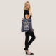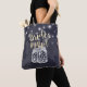 Bridesmaid Wedding Tote Bag Templates - Elegant Mason Jars and String Lights on Navy Blue Floral Linen Background.