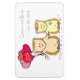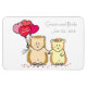 White background magnet with cartoon of cute hedgehog couple holding hands and holding heart shaped balloons with the text "just married". Customisable template to change to the names of the Groom and Bride and the wedding date. Suitable as a wedding party favor.