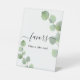 White background. Decorated with watercolored eucalyptus greenery. With the text: Favors, please take one!