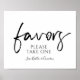 City Script Calligraphy Wedding Sign - Favors (Black & White): This modern script wedding sign is perfect to display at your wedding favor display table.