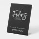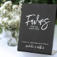 This custom table sign features a simple black and white design with a clean black background and crisp white fonts for a timeless look. “Favors” is displayed in large handwritten script, while “Please Take One” appears below in a classic serif font for a balanced and elegant touch. At the bottom, the bride and groom’s names are shown in a coordinating handwritten script.