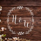 Elegant white laurel wreath floral design with a wedding monogram that's perfect for decorating your dance floor or anywhere at your wedding reception.