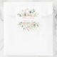 Wedding Floral Elegant Pink Chic Date Script Name Square Sticker
