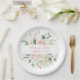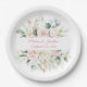 Elegant floral personalized script bridal shower, wedding paper plate. I love the muted watercolor pink blush pastel flowers.