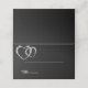 This folded name place card is shown in basic white with a black background color, shown with a diamond sparkle two hearts accent.