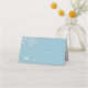 This folded name place card is shown in basic white with a smoky blue background color, shown with a diamond sparkle two hearts accent.