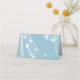 This folded name place card is shown in basic white with a smoky blue background color, shown with a sheer veil with butterflies.