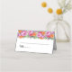 This folded name place card is shown in basic white with a lovely pink and orange color peony floral mix accent.