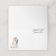 This folded name place card is shown in basic white with a wedding couple print and custom names.