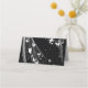 This folded name place card is shown in basic white with a black background color, shown with a sheer veil with butterflies.