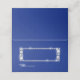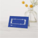This folded name place card is shown in basic white with a sapphire blue background color, shown with a frame of diamond sparkle.