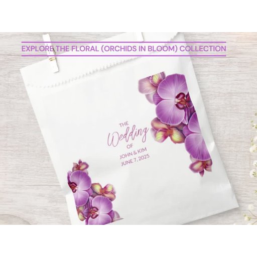Create personalized wedding place cards. Great for warm weather events, weddings, anniversaries, outdoors, indoors. Use to complement floral wedding event themes, including tropical themes. Orchids in Bloom design. Use the template to personalize.
