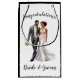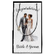This wedding gift bag is shown with a bride and groom congratulations print.