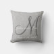 Custom monogram wedding pillow printed on faux grey linen background.