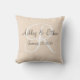 It was fun to be able to personalize it for the couple. It fit the theme of the bridal shower. My daughter was thrilled when she saw it. I had cleaned up and spray painted a wicker chair for her to sit on during the shower and this pillow was placed on it as a special touch. It drew a lot of attention from the guests. It was great! Printing was crisp and exactly as I personalized it. It was a perfect piece for the shower.