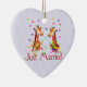 Two cute giraffes hold bouquets of flowers as rainbow colored hearts surround them. Equally lovely for a gay or straight wedding rehearsal, informal ceremony, and reception.