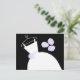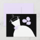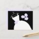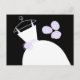 Bridal themed post card with a pretty design in shades of purple, black and white featuring a stylised wedding dress on a hanger accompanied by a bouquet on the front, and pale purple back. A customizable design for you to personalise with your own text, pictures and ideas.