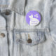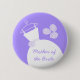 Pretty bridal themed button badge featuring a stylised wedding gown and flowers in shades of purple and white. A customizable design for you to personalise with your own text, pictures and ideas.