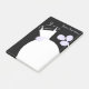Bridal themed post-it notes with a pretty design in shades of purple, black and white featuring a stylised wedding dress on a hanger accompanied by a bouquet of flowers. A customizable design for you to personalise with your own text, pictures and ideas.