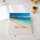 Personalized photo guest book featuring a serene tropical beach landscape perfect for a coastal wedding theme allowing friends and family to sign their well wishes for the bride and groom in a beautiful high quality bound album to cherish memories of your special day for many years