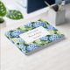 This guest book is shown in a romantic blue hydrangea print.