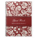 Spiral wedding guest book notebook in red and cream off white classic floral damask pattern, with customizable text to add your own name and wedding date.