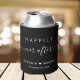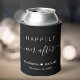 Black wedding can cooler party favors with "Happily Ever After" in a mix of simple white typography and a trendy white script with swashes, your first names and the date joined by a heart. Perfect for your wedding reception, engagement parties and couples shower.