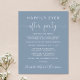 Budget-friendly dusty blue elopement or smaller wedding announcement and reception or celebration party invitation. The front features "Happily Ever After Party" in a mix of simple white typography and an elegant white script with swashes, and you can personalize your message and invitation in more detail and your names in a signature-like script. The reverse side features your first names and wedding date.