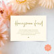 Celebrate the beginning of your journey together with our elegantly crafted "honeymoon fund" wedding invitation yellow gold theme enclosed card. Featuring a sophisticated blend of modern script and romantic allure, each card is meticulously designed to convey the essence of your special day. Perfectly suited for couples seeking a unique way to share their honeymoon dreams, this card invites your loved ones to contribute towards unforgettable experiences. Whether nestled in a luxurious envelope or presented alongside your wedding invitations, our card adds a touch of enchantment to your celebration, promising cherished memories that last a lifetime. Designed by TeeshaDerrick.